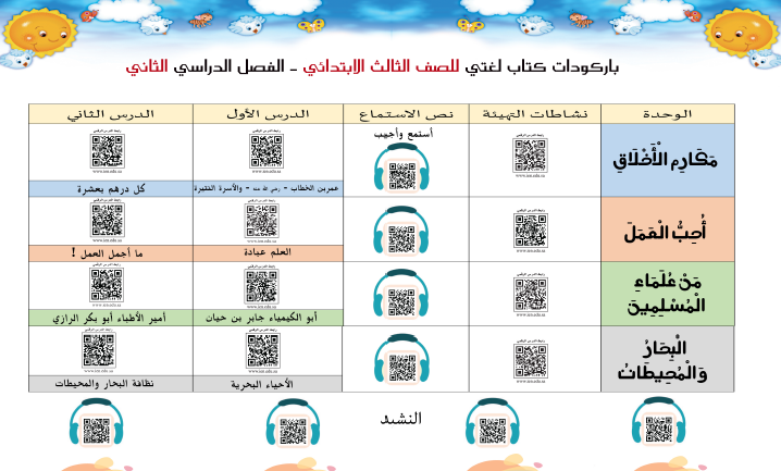 عزيزي الطالب والمعلم نقدم لكم توزيع باركودات لغتي الجميله الصف الثالث ابتدائي الفصل الثاني جديد2