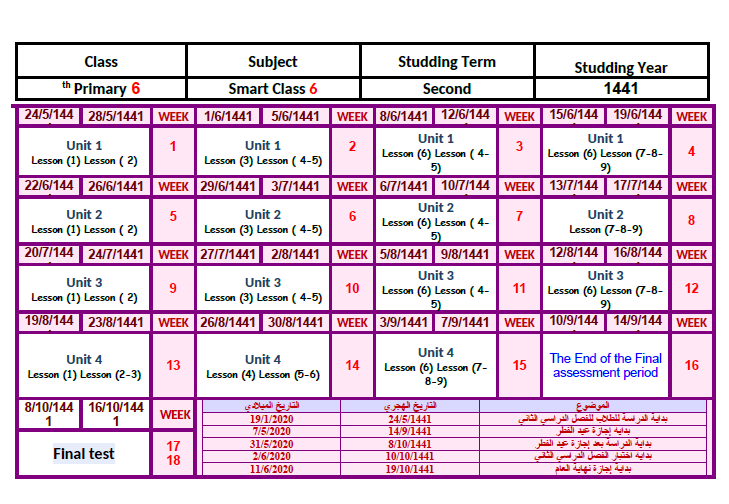 تحميل مباشر توزيع منهج مادة Smart Class اللغه الإنجليزية الصف السادس الإبتدائي الفصل الثاني جديد2